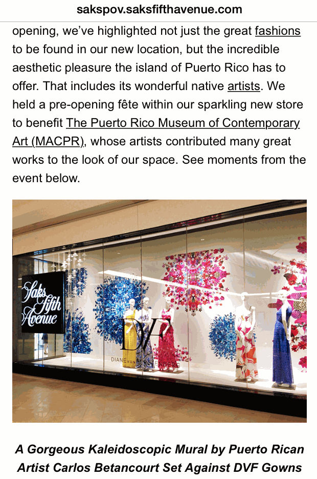 • Carlos Betancourt, Collaboartion Diane Von Fustenberg SAKS Fifth Avenue. (click on photo for more pictures), 2015