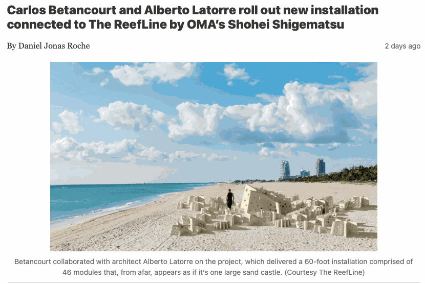 Betancourt collaborated with architect Alberto Latorre on the project, which delivered a 60-foot installation comprised of 46 modules that, from afar, appears as if it’s one large sand castle. (Courtesy The ReefLine)
