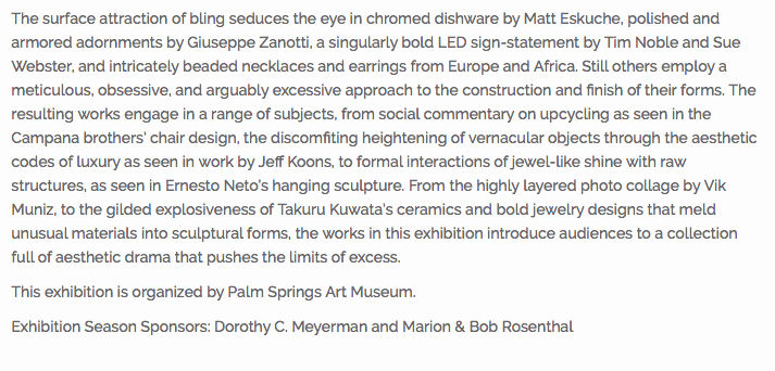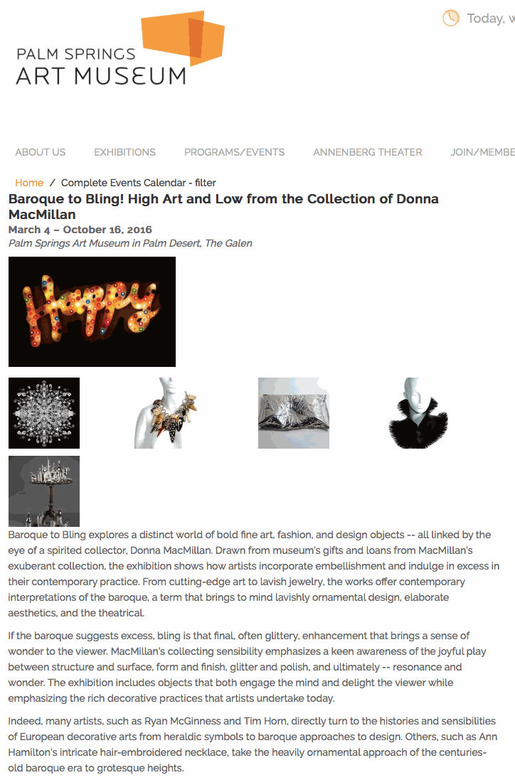Baroque to Bling! High Art and Low from the Collection of Donna MacMillan: Group exhibit, Palm Spring