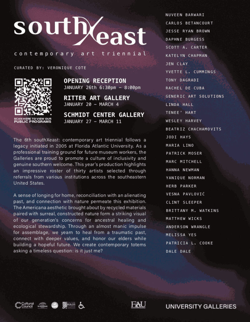 SouthXeast: Contemporary Art Triennial: 6th Edition, Univeristy Galleries, Florida Atlantic University.
