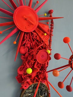 Mixed media, found objects, paint 50 x 36 in